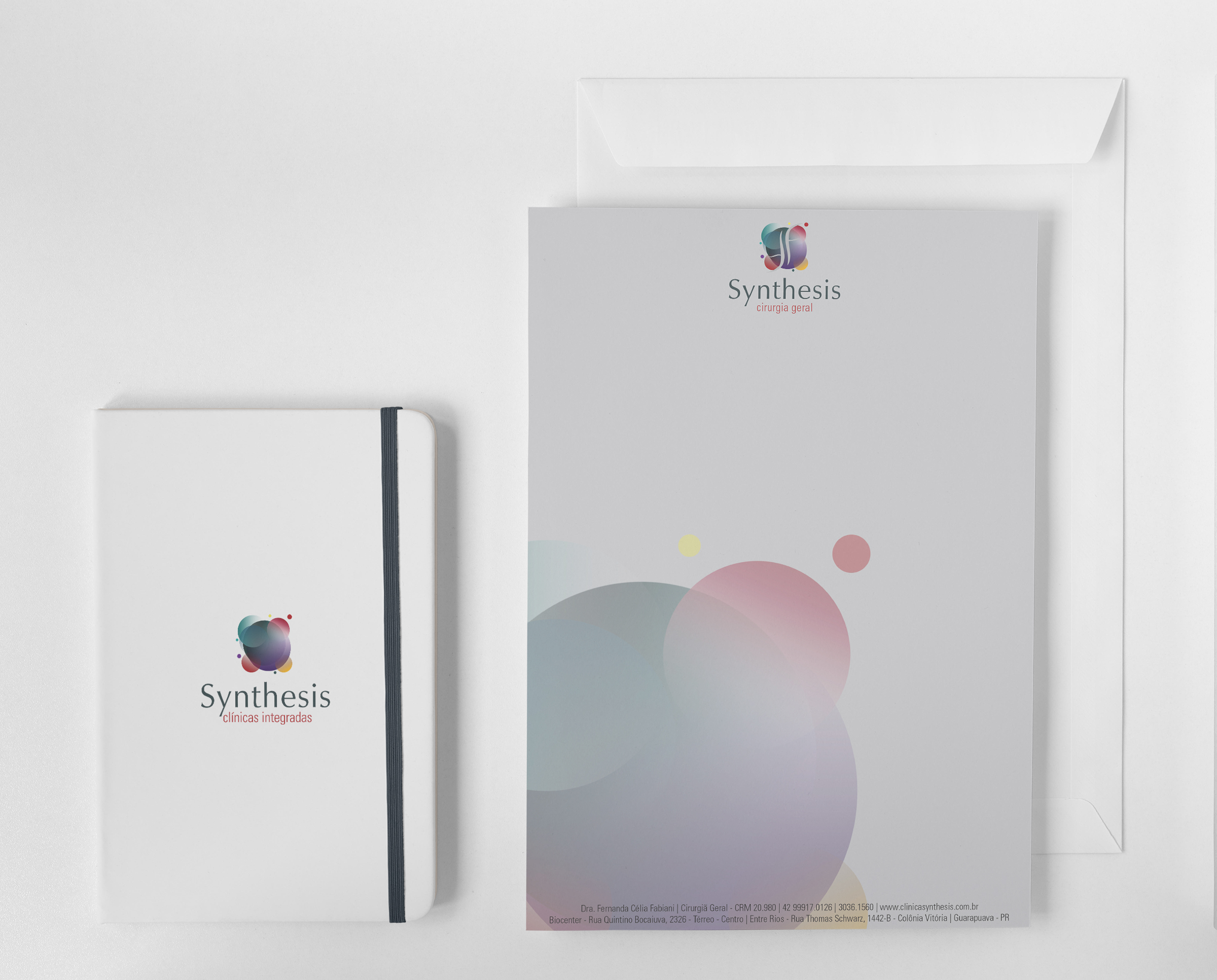 The symbol developed for Clínica Synthesis’s visual identity is the materialization of this concept. Through carefully selected colors and shapes, it visually communicates the integration and synergy of different specialties, ensuring that the multidisciplinary care proposal is immediately understood and valued by patients.
